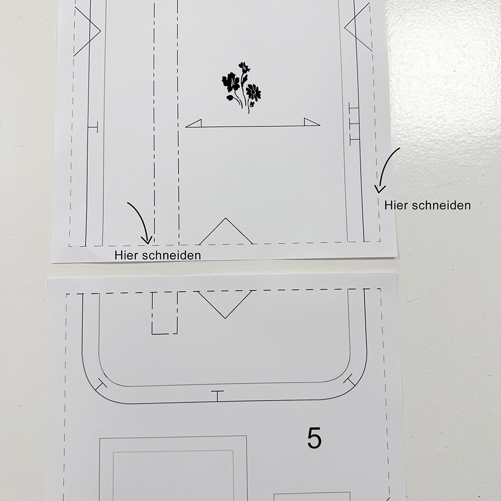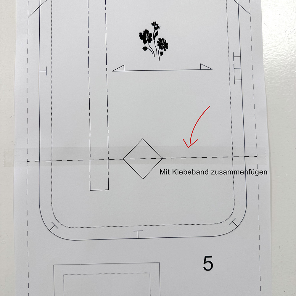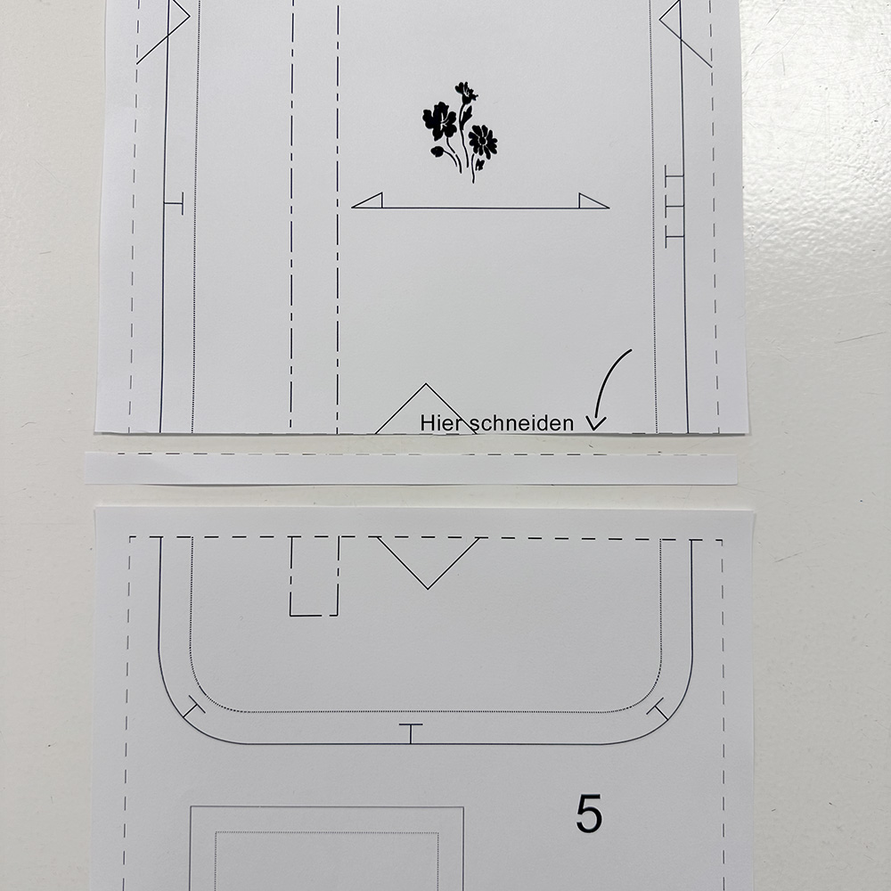 Hier zeigen wir dir Schritt für Schritt, wie du die A4-Seiten zusammenfügst, damit du schnell mit dem Ausschneiden deiner Schnittteile beginnen kannst. Folge den Schritten unten – und nutze die Bilder als visuelle Hilfe.