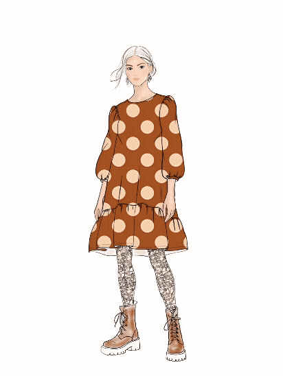 Klassischer Viskosestoff von Light & Lush mit großen, hellen Punkten auf karamellbraunem Grund. Der Stoff ist weich, leicht und ideal für feminine Kleider, Röcke und luftige Blusen.